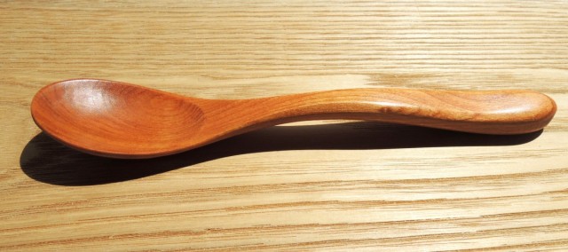 素材:山桜 塗装:柿渋・食用エゴマ油 サイズ(目安):長さ168×幅33×厚さ16 いろいろな用途に使っていただける、ナチュラルな形のスプーンです。 女性用のカレースプーンとしてもちょうど良いサイズです。